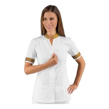 Blouse Blanche Femme Manches Longues Vichy 100% Coton Blouse médical femme, idéale comme blouse laboratoire, ou blouse pharmacie