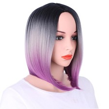 NONE Perruques synthétiques de couleur verte dégradée bleue de 30 pouces, perruque longue et lisse avec frange pour femmes, perruque de Cosplay résistante à la chaleur