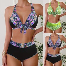 Maillot de bain imprimé, Push Up, Bikini, taille haute, rembourré, pour femmes, vêtements de plage, été, 2024