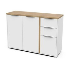Buffet 3 portes décor chêne et vert 150 cm - Ingo