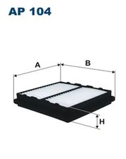 Fabricant: FILTRON. Hauteur [mm]: 185, 37,5. Index: AP 104. Largeur [mm]: 208. Longueur [mm]: 185, 37,5. Numéro du fabricant: AP 104. Type de filtre: Cartouche filtrante.