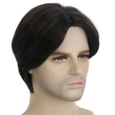 NONE Perruque de cosplay courte marron pour hommes, cheveux synthétiques coupés en bol, perruque rétro anime, adaptée aux films, fêtes, Halloween, Noël