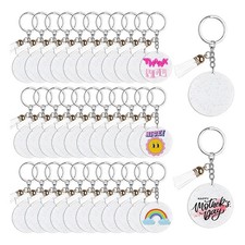 NONE Porte-clés en acrylique vierge, 50 pièces, ornement en vrac, rond en acrylique transparent avec trou pour la gravure de projets de bricolage